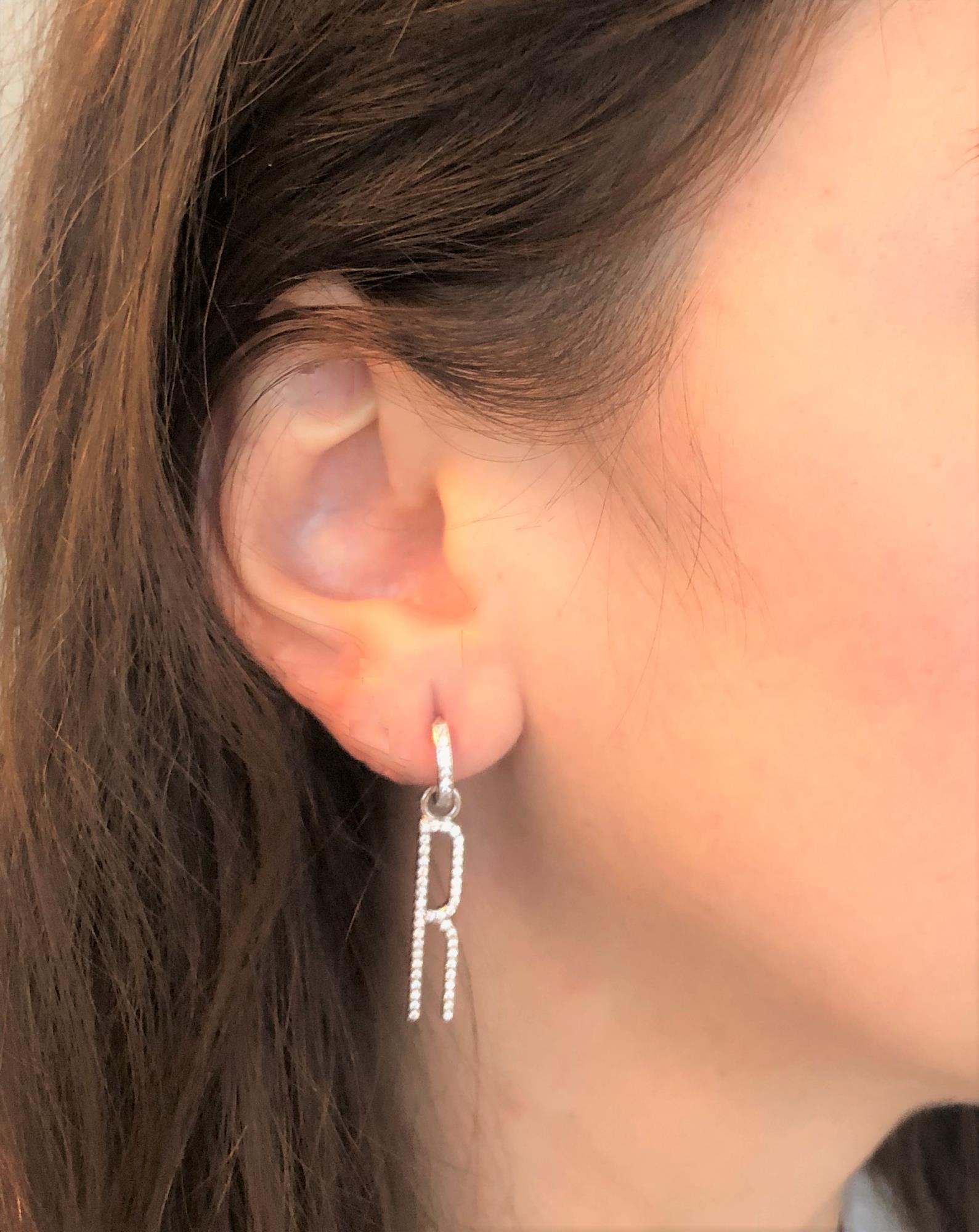 Orecchini con lettera "R" in argento con zirconi - CUORI MILANO