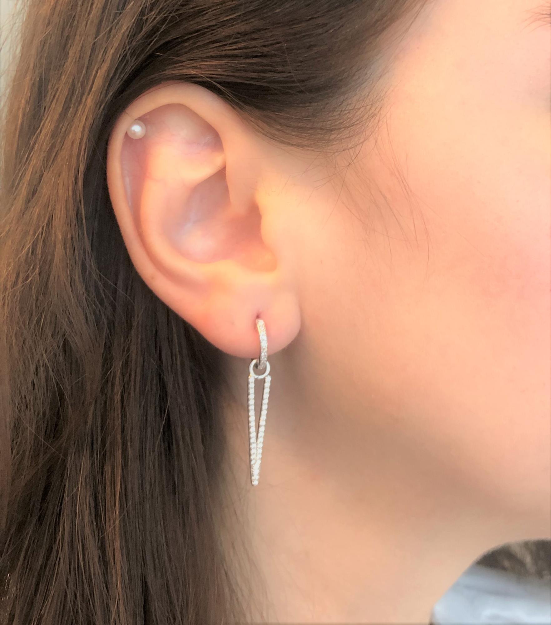 Orecchini pendenti lettera V in argento con zirconi bianchi
