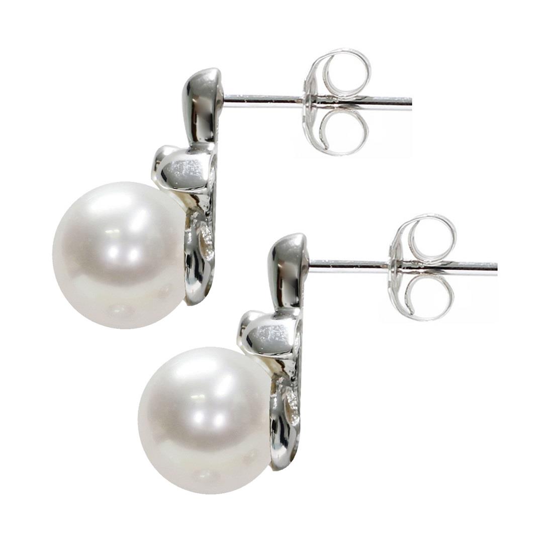 Orecchini Mayumi in oro bianco con perle Akoya (diametro 7/7.5mm) e diamanti ct. 0,016.