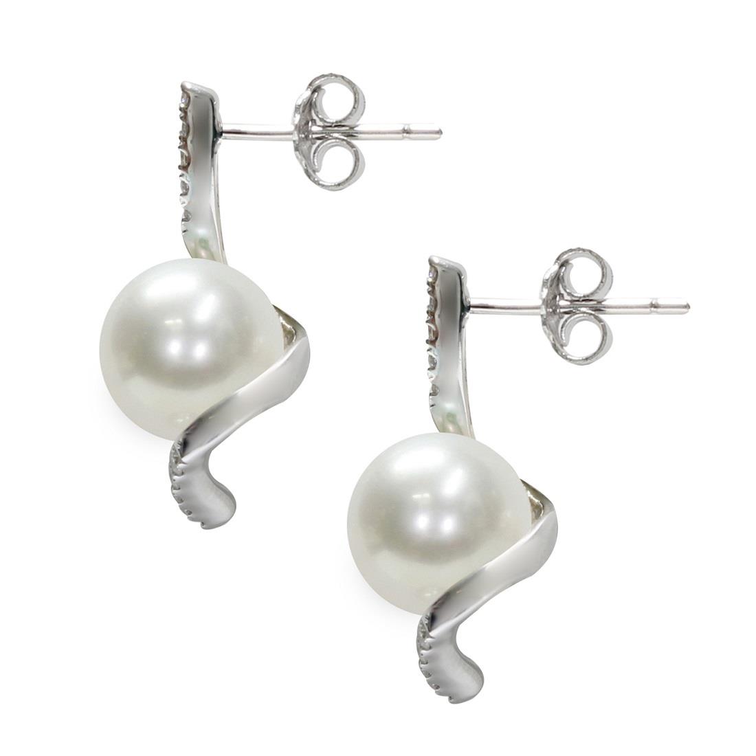 Orecchini Mayumi in oro bianco con perle Akoya (diametro 7/7.5mm) e diamanti ct. 0,10.