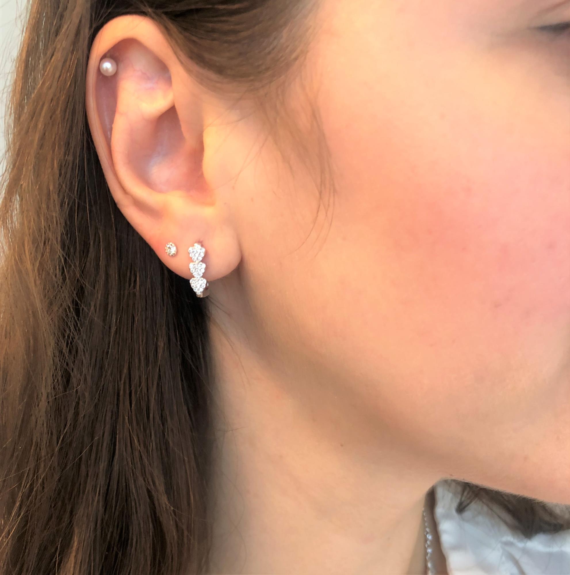Orecchini design Cuori Milano in argento con cuori e zirconi bianchi. Diametro 1 cm.