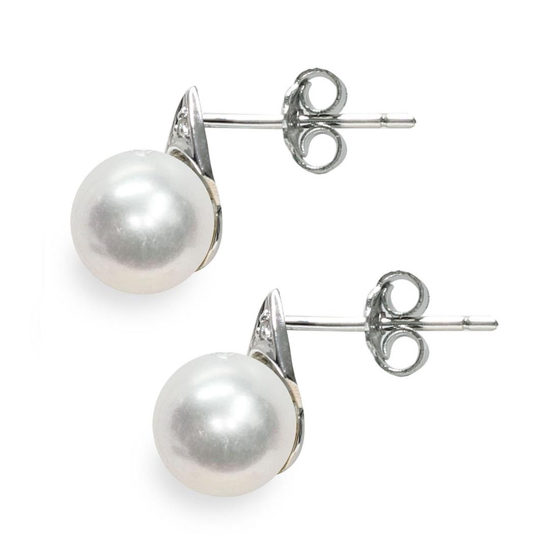 Orecchini Mayumi in oro bianco con perle Fresh Water (diametro 7/7.5mm) e diamanti ct. 0,01