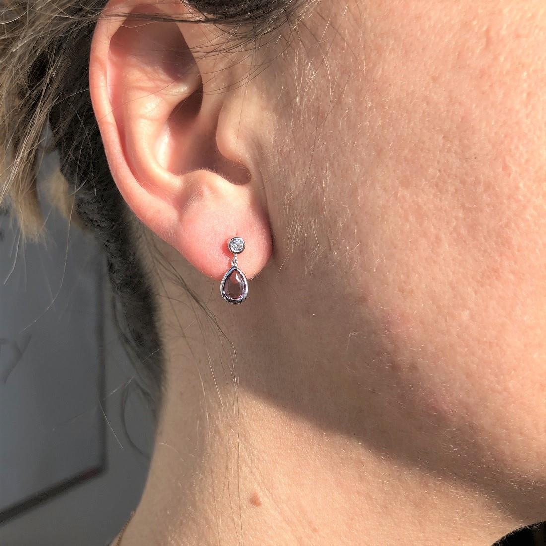 Orecchini Oro&Co 925 in argento con pietra a forma di goccia color rosa