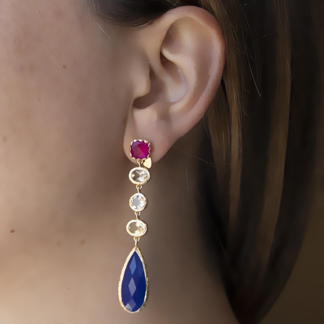 Orecchini in argento e pietre naturali colorate, lunghezza 7 cm - ALFIERI & ST. JOHN 925