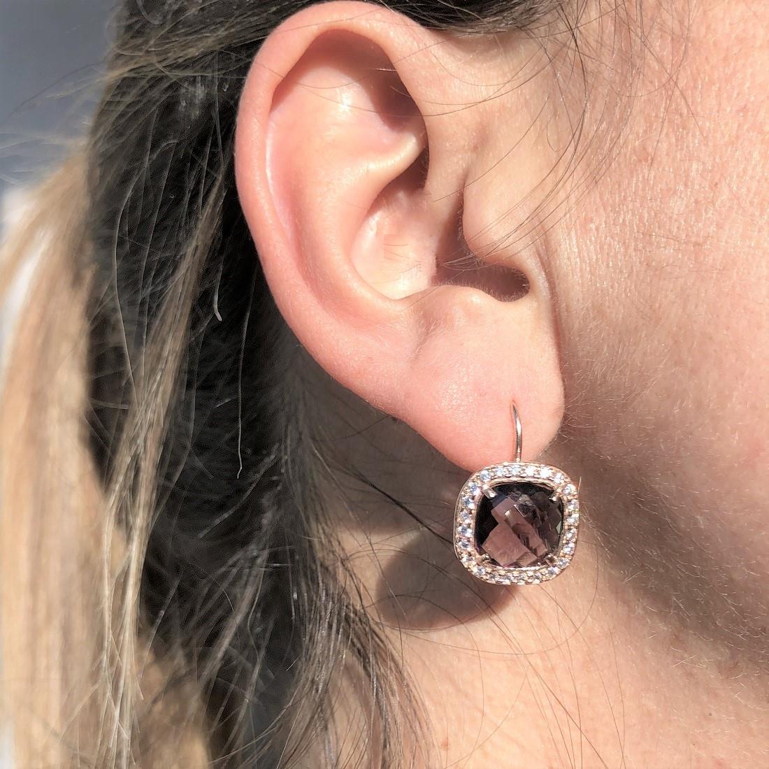 Orecchini Oro&Co 925 in argento rosato con pietra viola e zirconi bianchi.