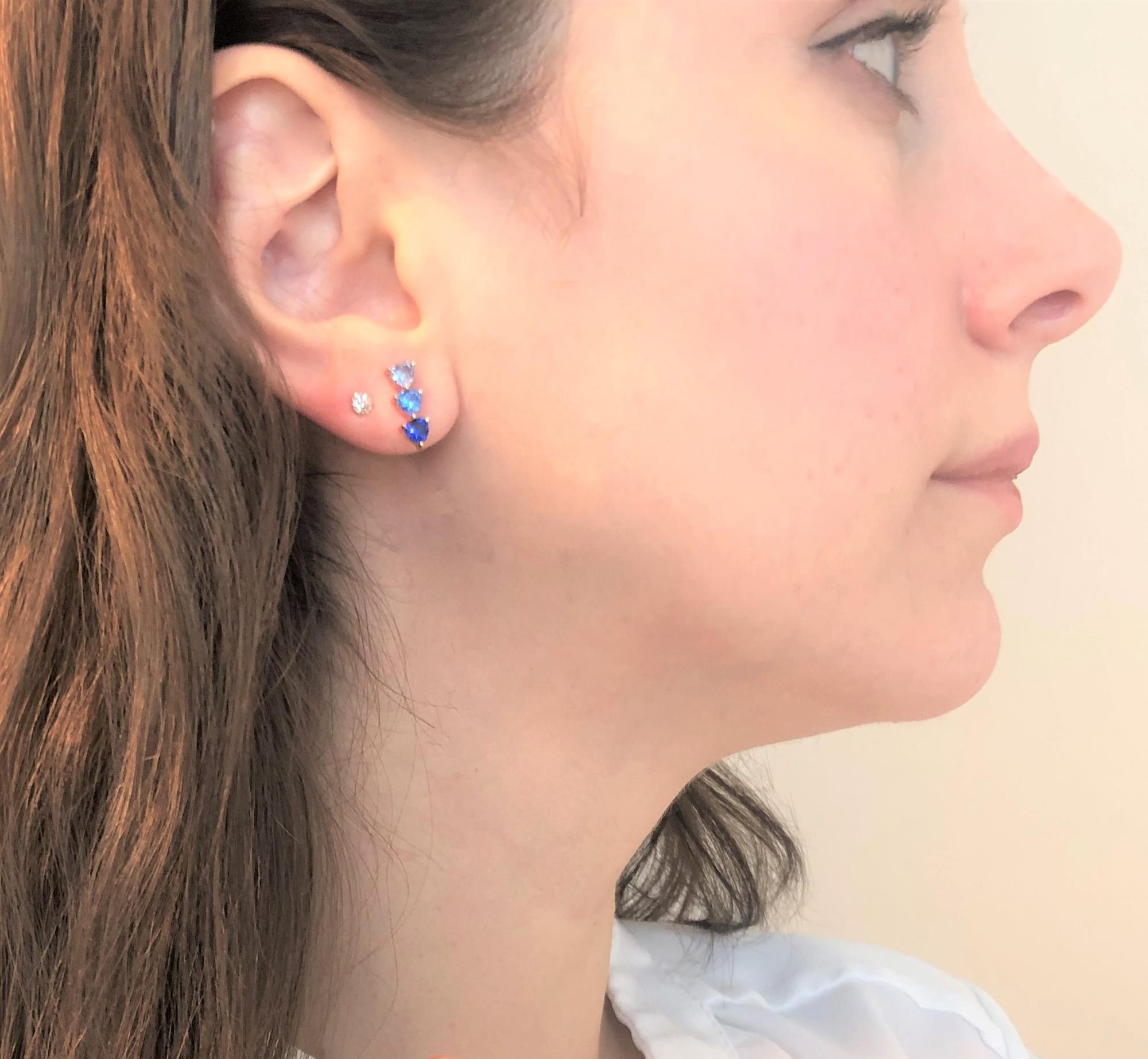 Orecchini Cuori Milano in argento rosa con zirconi azzurri e blu a forma di cuore. Lunghezza 1,5 cm.