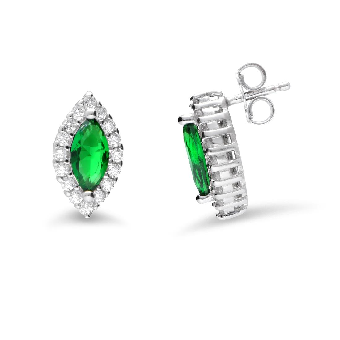 Orecchini Oro&co 925 in argento con pietra marquise verde e zirconi bianchi. Chiusura con farfallina.