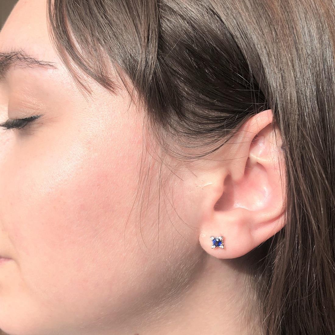 Orecchini in oro bianco con diamanti ct. 0,06 e zaffiro ct. 0,50