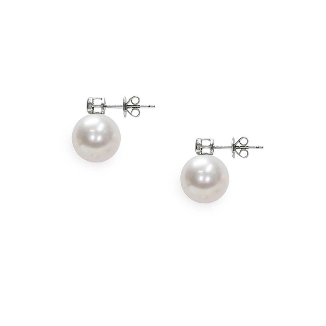 Orecchini a lobo Mayumi in oro bianco 18kt con perle di acqua dolce di diametro 6/6,5 mm e diamanti ct 0.04.