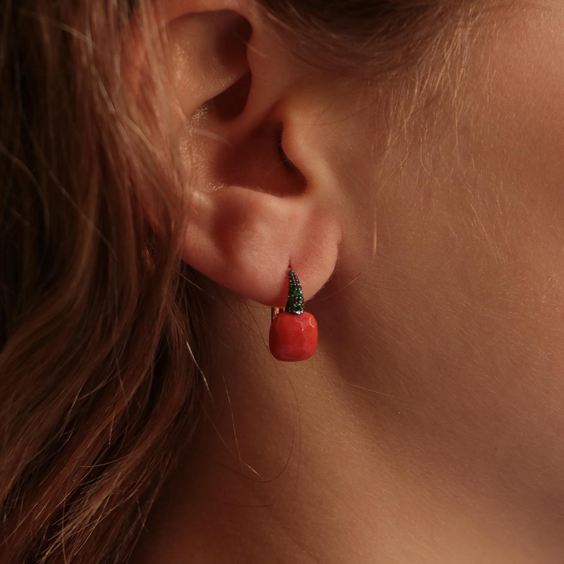 Orecchini Pomellato della Collezione Capri in oro rosa con corallo e tsavoriti 0.20 ct