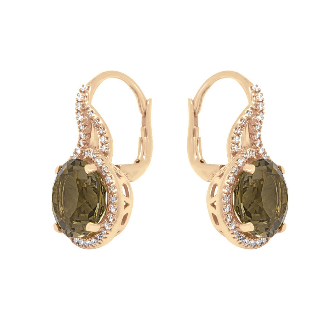 Orecchini in oro rosa con diamanti ct. 0,42 e quarzi fumè