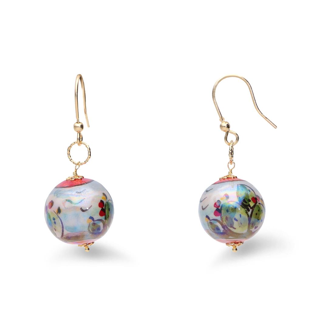 Orecchini de Le Perle di Caltagirone collezione Frutti di Sicilia in argento dorato con pendente in ceramica dipinta a mano con fichi d'india. Diametro perle 20 mm.