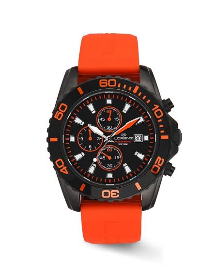 Orologio Cronografo Lorenz Subacqueo con cassa in acciaio 46,5mm, quadrante nero, ghiera nera, cinturino in gomma nera, chiusura ardiglione, movimento quarzo Miyota OS10, Funzioni orologio: Crono 6-9-12.