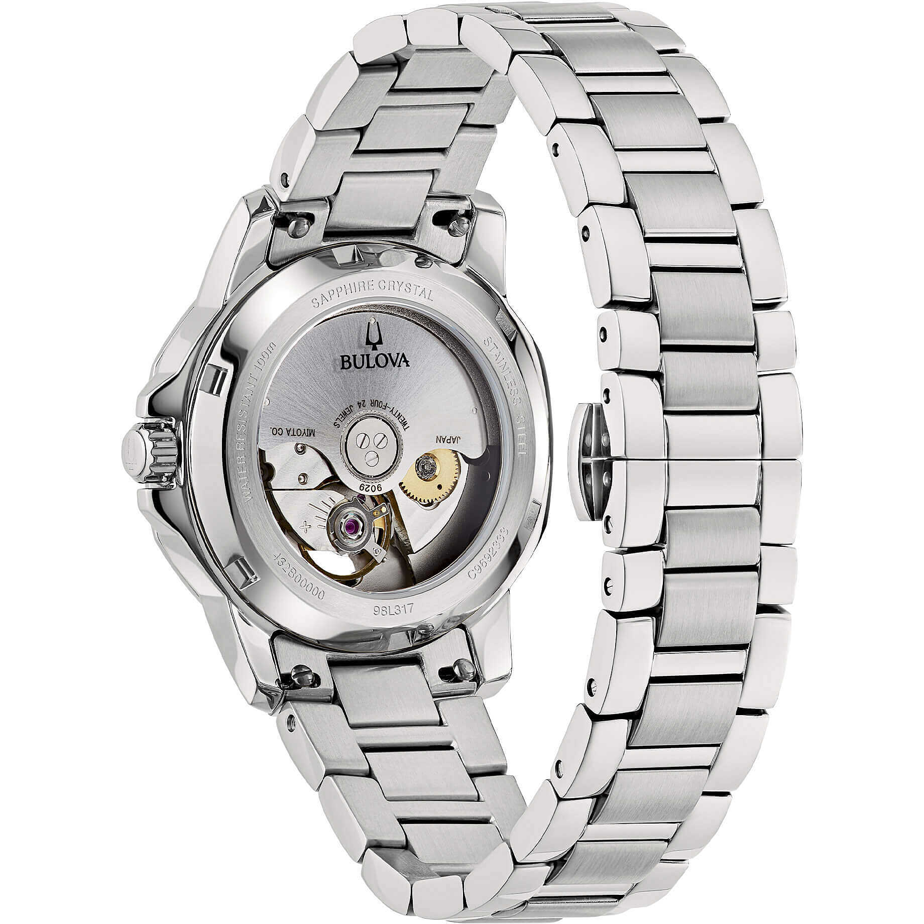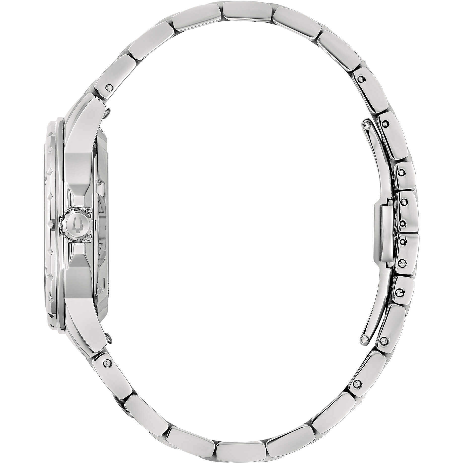 Orologio solo tempo di Bulova da donna della collezione Marine star.L'orologio presenta un materiale cassa in acciaio dalla dimensione di 35 mm con cinturino in acciaio .L'orologio presenta una chiusura a deployante con indici in numeri romani e movimento automatico . La resistenza all'acqua è fino a 100 ATM.La referenza è: 98L317