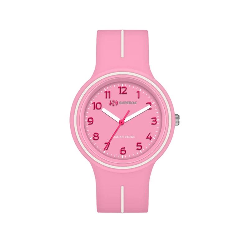 Orologio Superga Junior Solo Tempo con cassa di 32mm in alluminio, quadrante rosa, cinturino in silicone rosa movimento al quarzo, resistenza all'acqua è di 3 atm