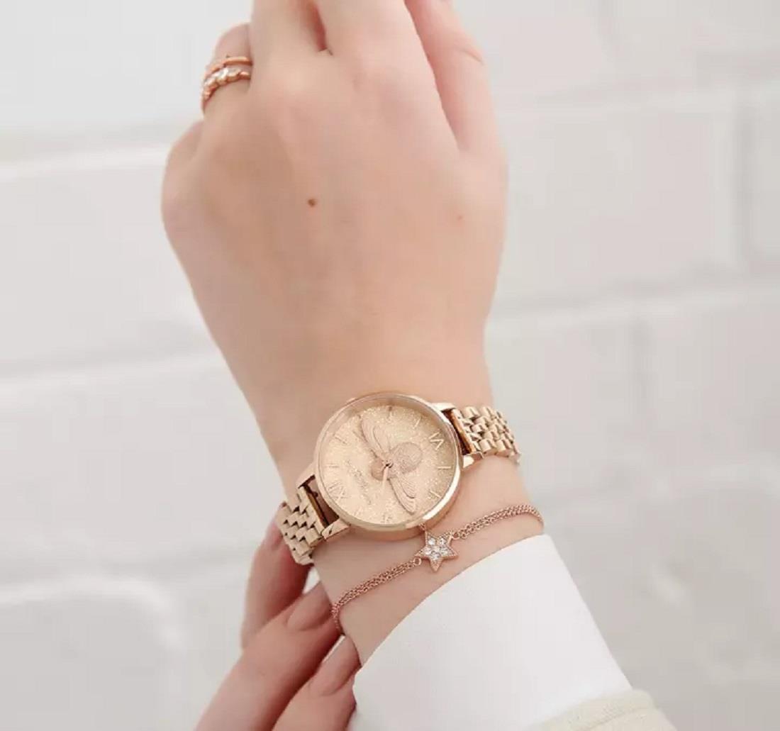 Orologio Olivia Burton 3D Bee & Pale Rose Gold Bracelet con quadrante in acciaio, cinturino in acciaio dorato. Movimento al quarzo, resistenza all'acqua fino a 10 metri