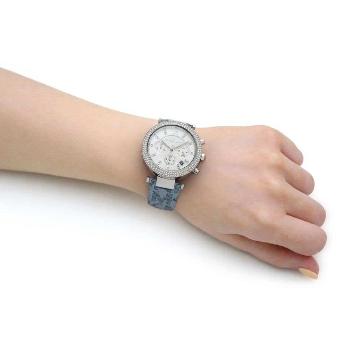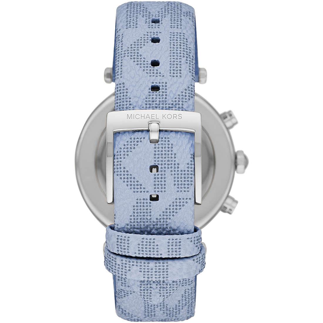 Orologio Michael Kors con cassa in acciaio 39mm, quadrante bianco, cinturino in pvc azzurro con finutura lucente, movimento quarzo, resistente all'acqua fino a 5ATM