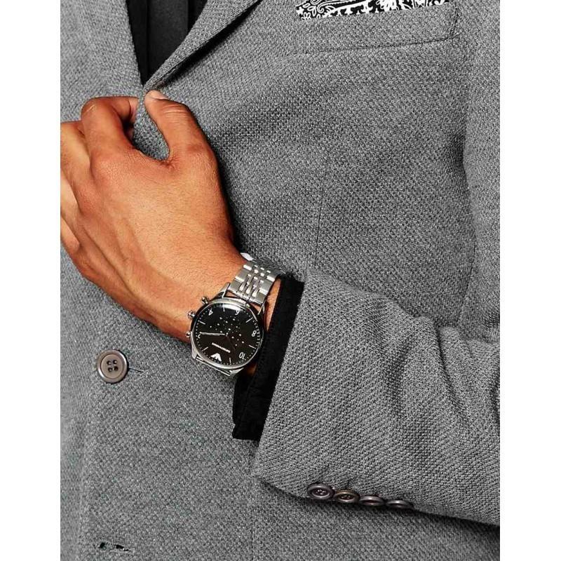 Orologio da uomo Emporio Armani con cassa in acciaio inossidabile da 43mm, quadrante nero, cinturino in acciaio inossidabile, movimento al quarzo, funzione datario e cronografo, vetro minerale. Resistente all'acqua fino a 5ATM