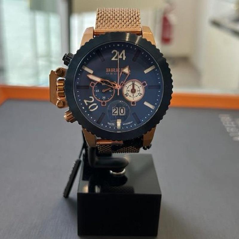 Orologio Brera Orologi collezione Militare con cassa in acciaio da 48 mm, quadrante blu con cronografo, cinturino in acciaio rosato, impermeabilita' fino a 10 atm, movimento al quarzo.