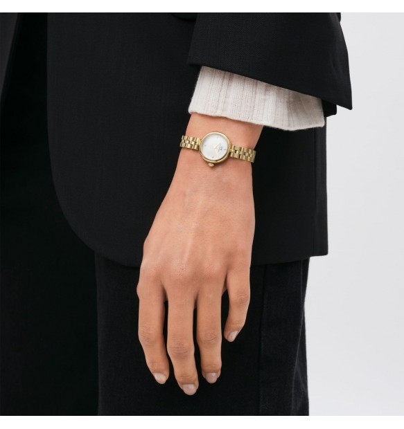 Orologio Daniel Wellington da donna della collezione Petite, modello Elan Jewelry, con cassa rotonda color oro nelle dimensioni 22x28,5 mm e quadrante bianco dal design luminoso e minimale. Il cinturino Link in tonalità oro, con misura di 8 mm, aggiunge un tocco elegante e ricercato all’insieme.