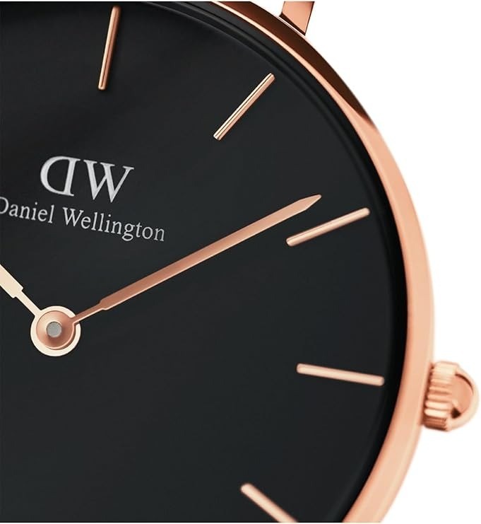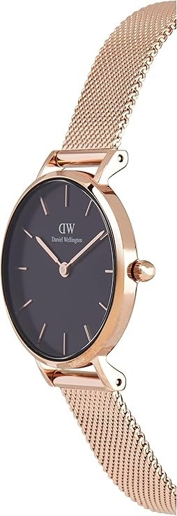 Orologio Daniel Wellington da donna della collezione Classic Petite, un modello solo tempo con cassa in acciaio dal diametro di 28 mm e spessore di 6 mm, completata da un quadrante nero incorniciato da un raffinato bordo in oro rosa. Il cinturino intercambiabile in maglia mesh oro rosa, largo 12 mm, aggiunge versatilità e stile. L’orologio è dotato di movimento Japanese Quartz e garantisce una resistenza all’acqua fino a 3 ATM.