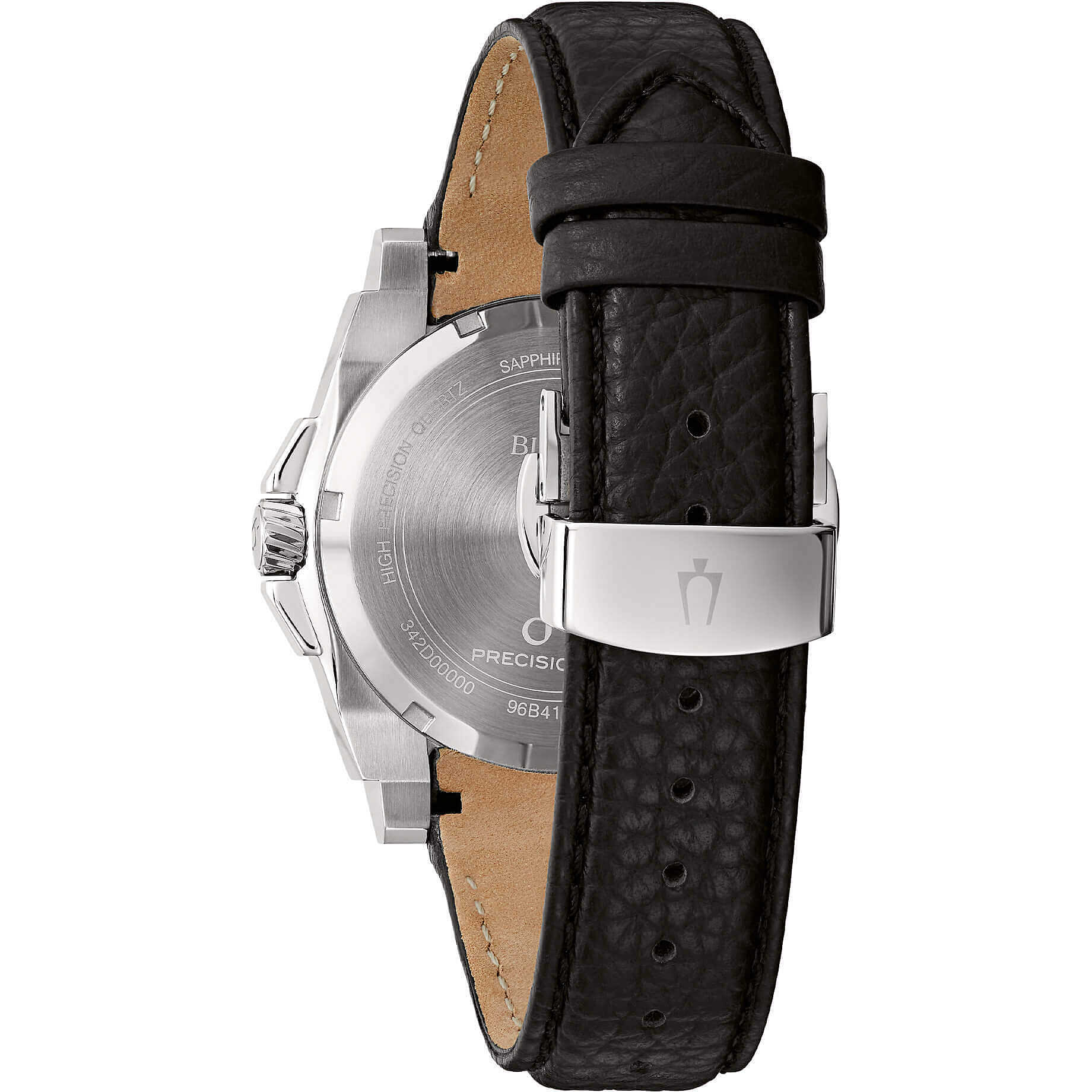 Orologio di Bulova solo tempo da uomo della collezione icon - precisionist. La cassa è in acciaio e misura 40 mm. Il cinturino è in pelle di colore nero con chiusura deployante. Presenta Indici a tacche. Movimento al quarzo e resistenza all'acqua di 10 atm. La referenza è: 96B416
