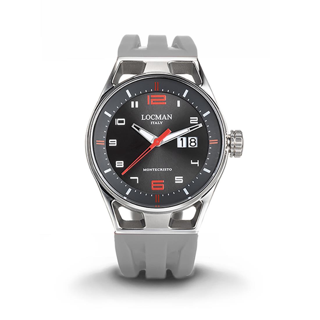 Orologio Locman Montecristo con cassa in acciaio e titanio 41mm, quadrante nero, movimento al quarzo, cinturino in silicone grigio, vetro minerale antigraffio, impermeabilità 10 atm