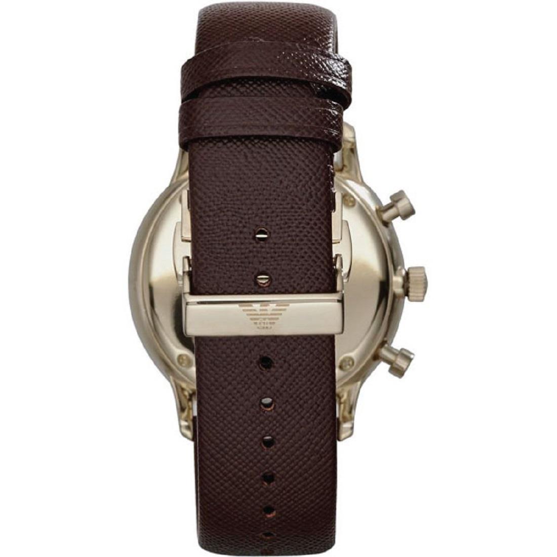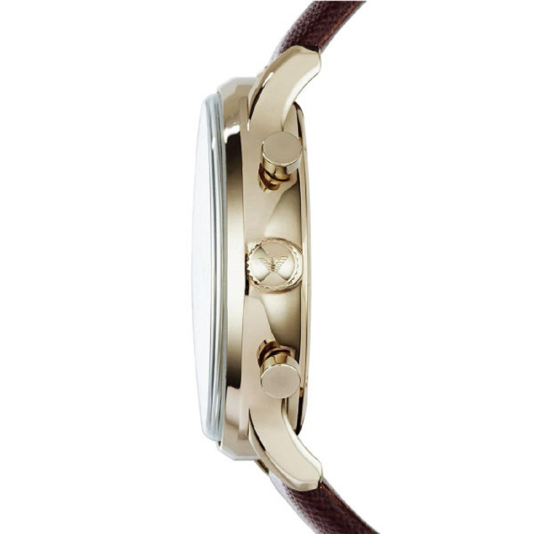 Orologio Emporio Armani con cassa in acciaio inossidabile colore oro rosa 42 mm, cinturino in pelle di vitello, quadrante colore marrone con vetro minerale. Movimento al quarzo con cronografo, resistenza all'acqua di 5atm.