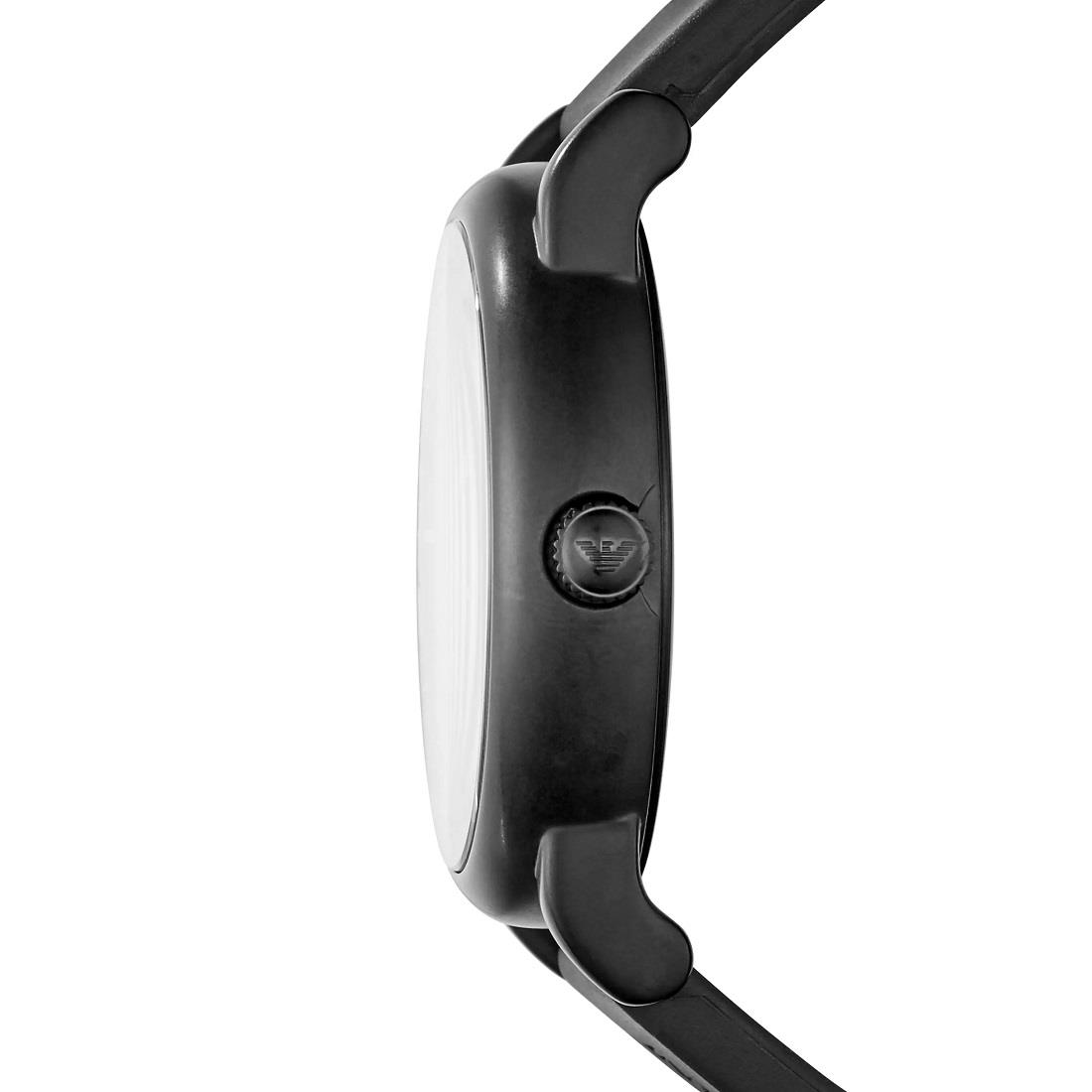 Orologio Emporio Armani con cassa in acciaio di 43 mm, cinturino in silicone nero e quadrante nero con vetro minerale. Movimento analogico al quarzo, resistenza all'acqua di 5atm.