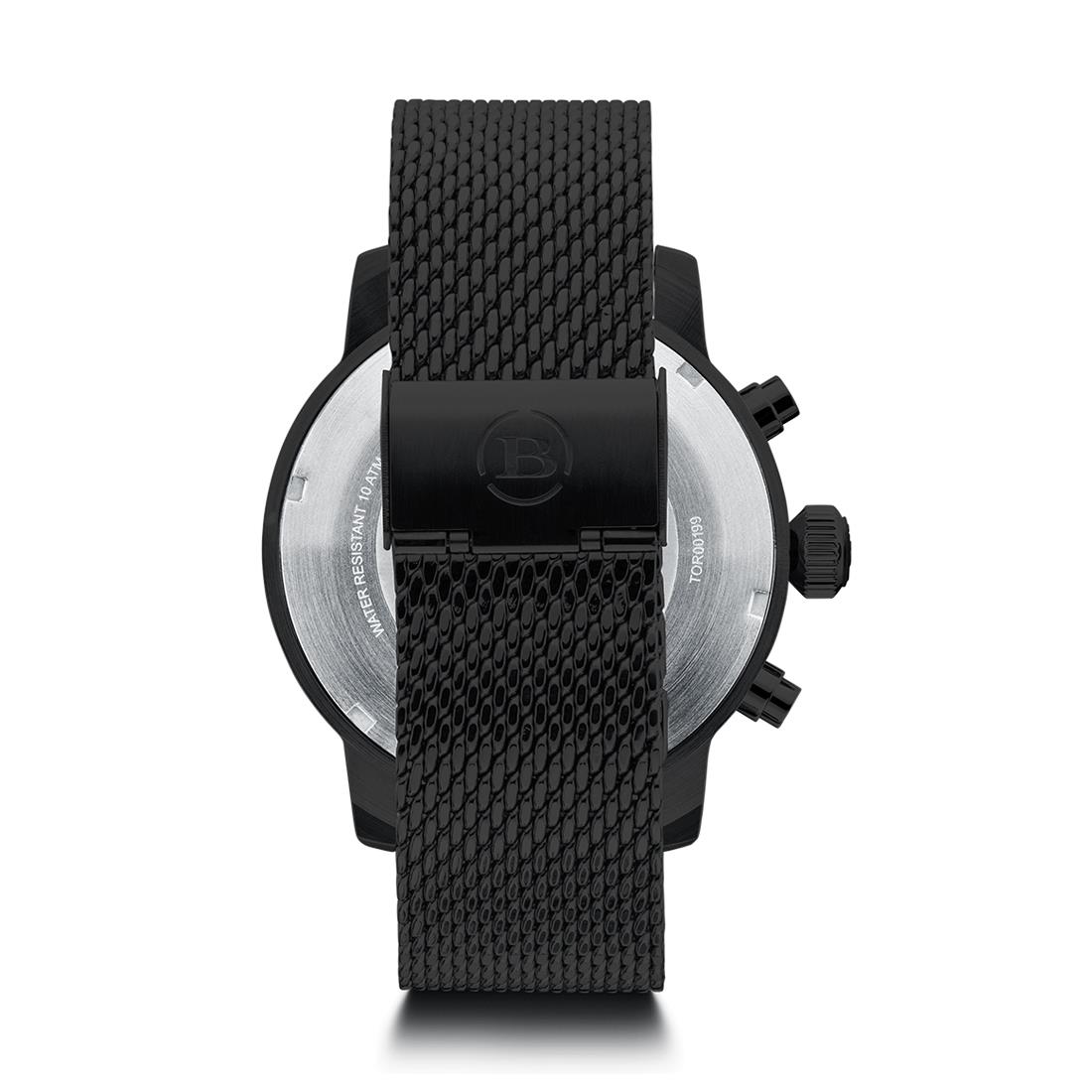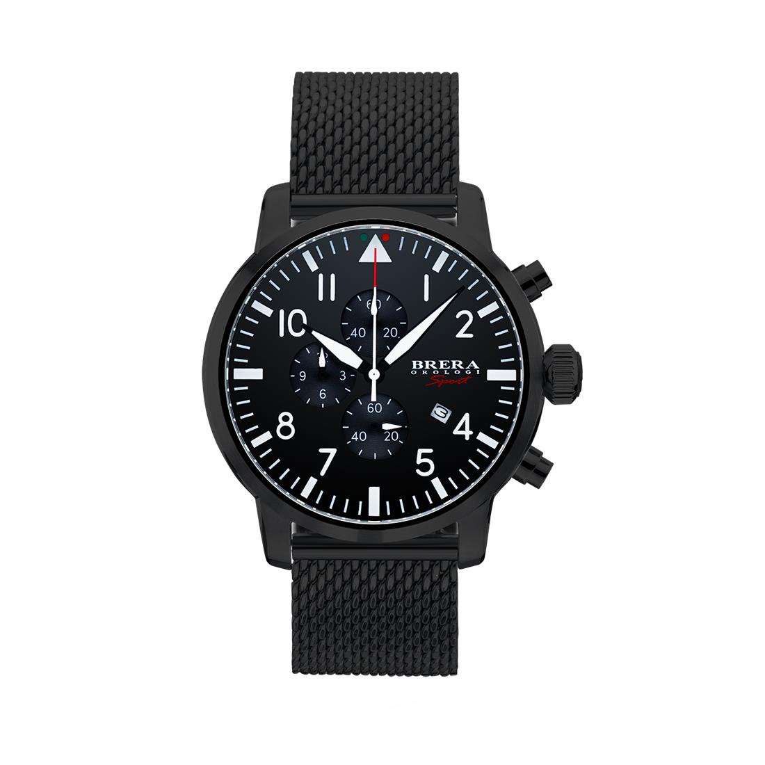 Orologio Brera collezione Tornado con cassa in acciaio 44mm, quadrante nero. Cinturino con maglia in acciaio nero, movimento Miyota quarzo cronografo, vetro minerale antiriflesso.