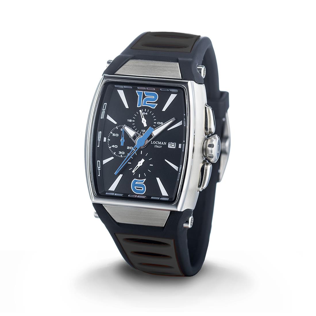 Orologio Locman Tremila con cassa in acciaio e titanio 50mm, quadrante nero, movimento cronografo al quarzo, cinturino silicone nero, vetro minerale antigraffio, impermeabilità 10 atm