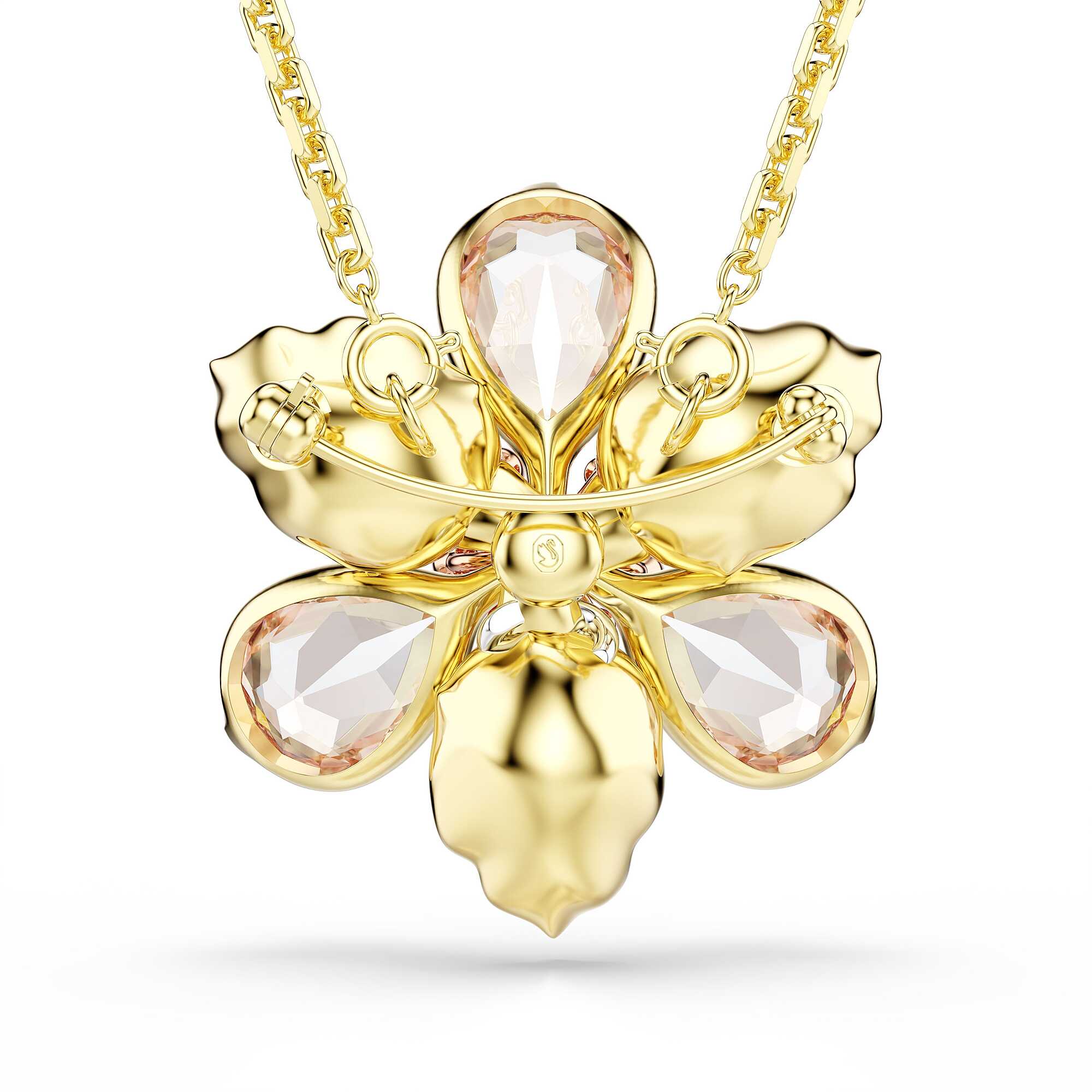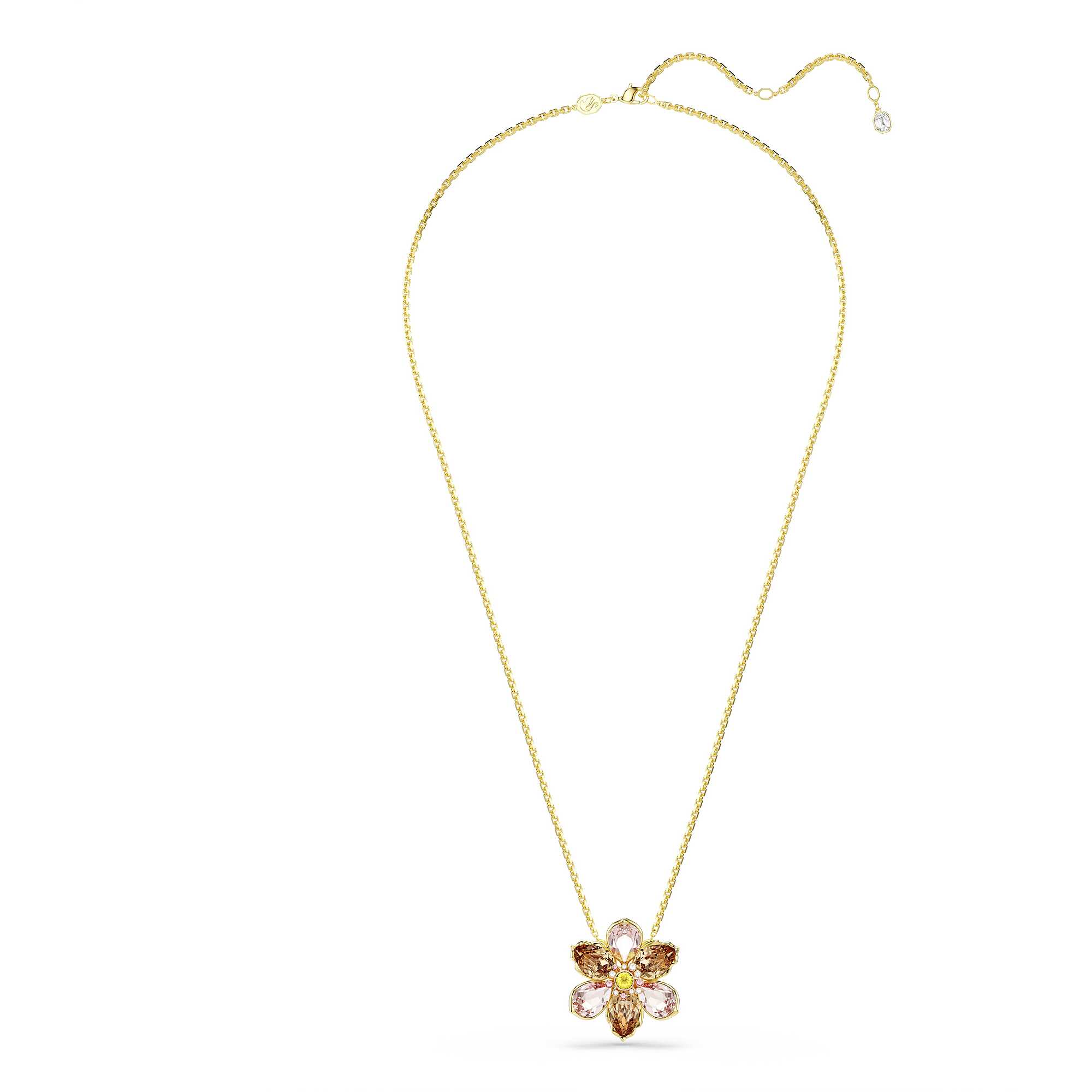 Pendente e spilla Swarovski collezione Idyllia con cristalli multicolore, placcatura oro. Lunghezza (minima - massima): 65 - 75 cm. Dimensioni decorazione: 4 x 3,6 cm