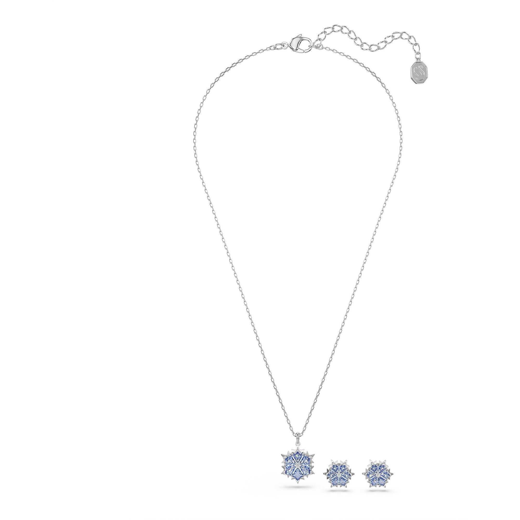 Set Swarovski collezione Magic con fiocco di neve blu e placcatura in rodio. Lunghezza collana: 38 - 43 cm. Dimensione decorazione: 1.9 x 1.3 cm. Orecchini: 1 x 1 cm.