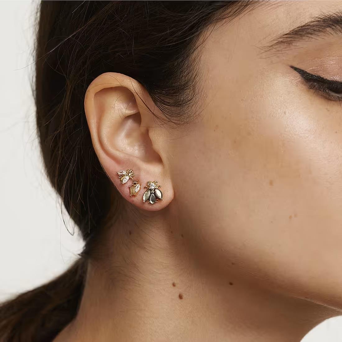 Set orecchini PDPAOLA collezione Zaza in argento placcato oro 18kt con Zircone bianco Base in madreperla nera e cristalli bianchi Base in madreperla verde e cristalli bianchi Labradorite nera Labradorite